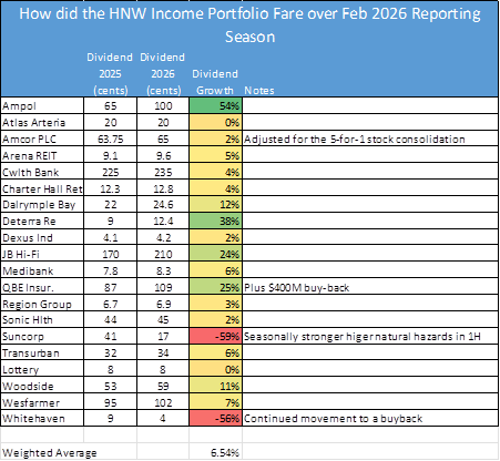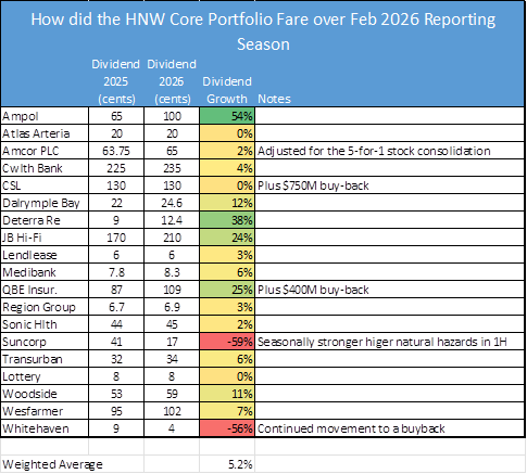 In February, the HNW Income Portfolio saw the weighted average dividend declared increase by 6.5% for the past six months, was a pleasing outcome.