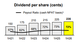 Commonwealth Bank (CBA) reported its half-year results for 2026, which showed that the underlying business was operating solidly as Australia’s largest company. Due to the breadth of its lending activities, which touch every sector, CBA is closely watched for a read on the broader Australian economy’s health. The HNW Core Portfolio has an 7% weight.