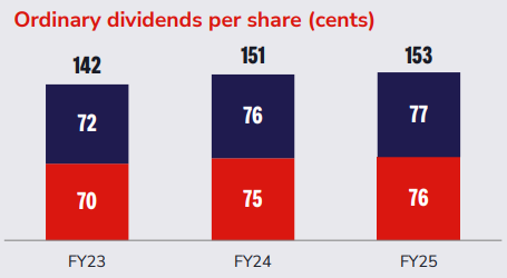 • Show me the Money: WBC announced a 1% dividend increase to $1.53 per share fully franked (See Below), representing a payout ratio of 75% of profits.